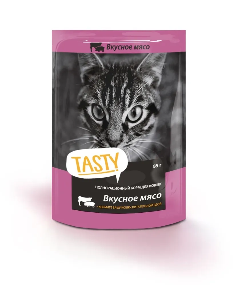 Tasty Tasty корм конс. д/кош. мясное ассорти в желе, пауч, 85 г