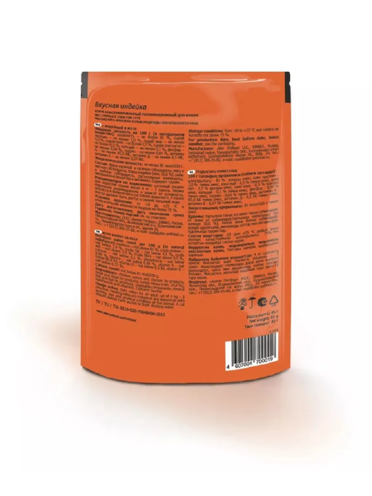 Tasty Tasty корм конс. д/кош. с индейкой в желе, пауч, 85 г