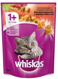 WHISKAS "Аппетитный обед" подушечки с нежным паштетом с говядиной и кроликом 800 г