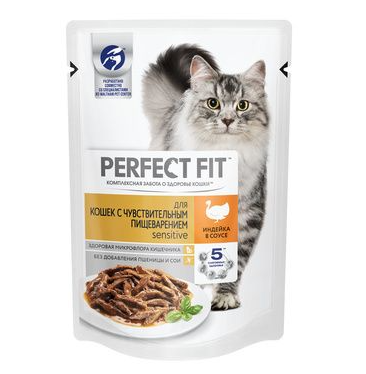 PERFECT FIT "Sensitive" для кошек с чувствительным пищеварением рагу с индейкой в соусе 75 г
