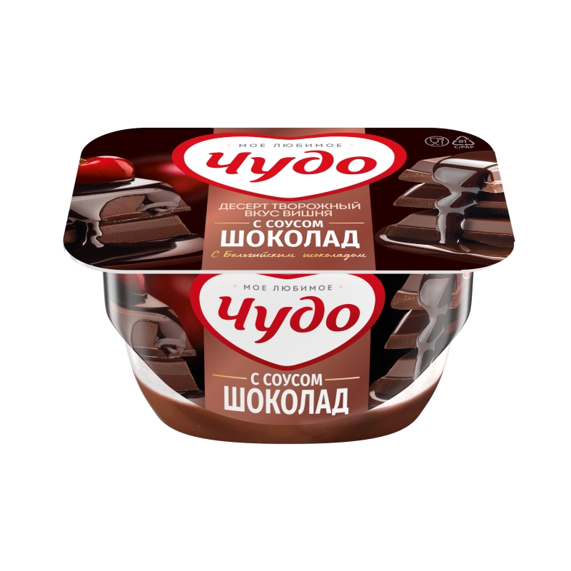 Творожный десерт ЧУДО «Творожок» со вкусом вишни, с соусом «Шоколад» 100 г 4,4 %