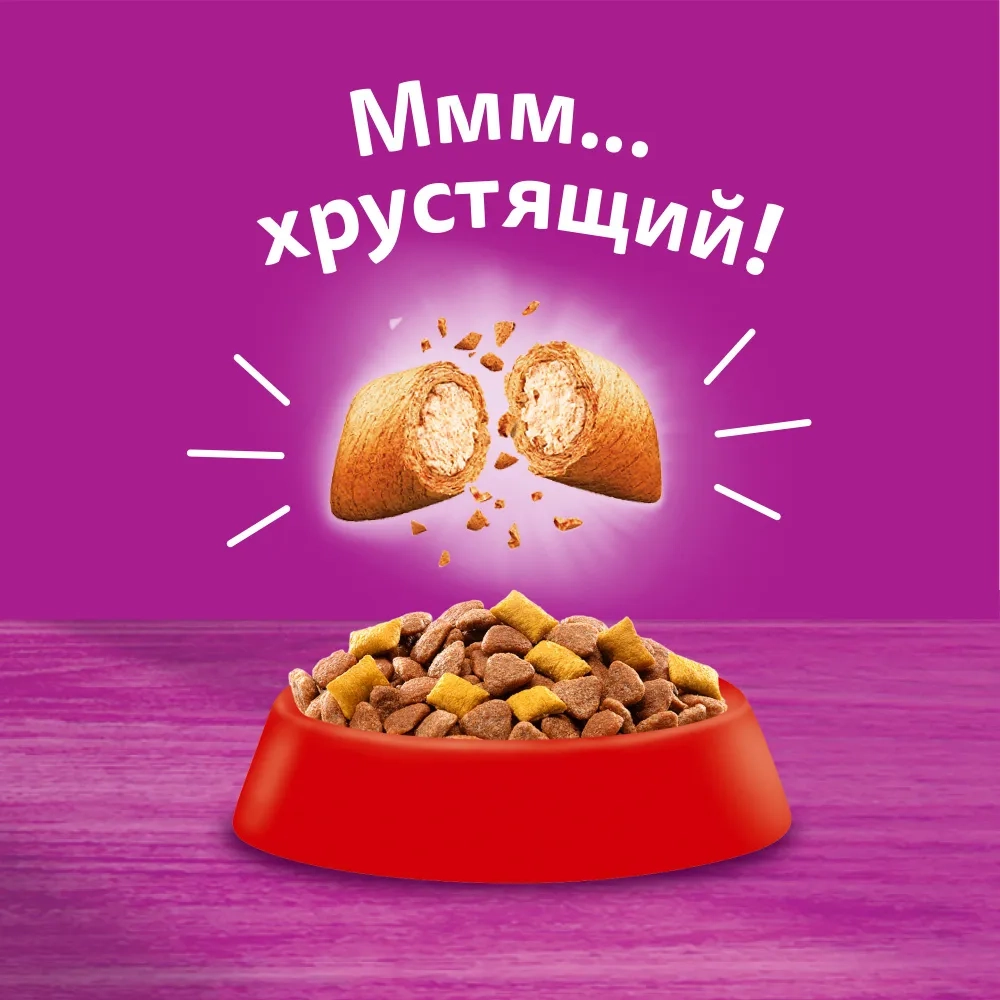 Создан специально, учитывая особые потребности Вашей любимицы. Хрустящие подушечки с нежным паштетом внутри обязательно придутся по вкусу Вашей кошке.