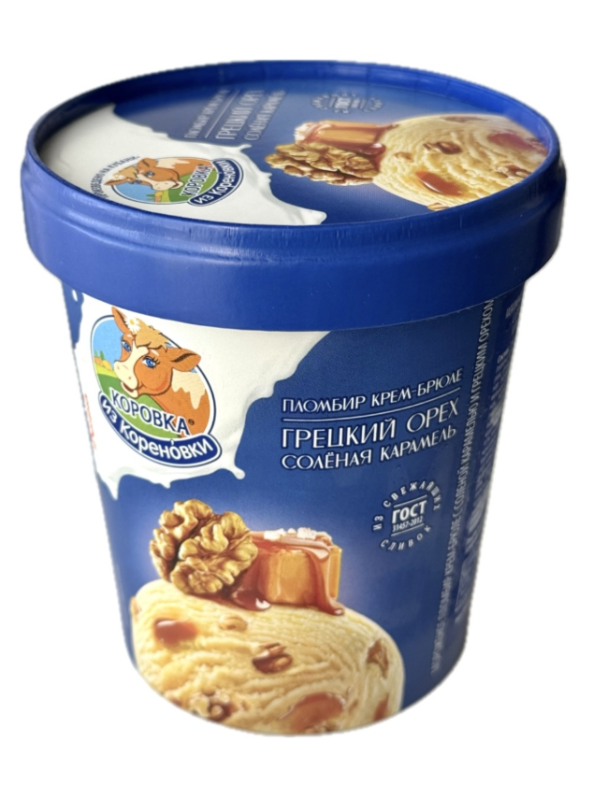 Мороженое КОРОВКА ИЗ КОРЕНОВКИ "Пломбир крем-брюле" с соленой карамелью и грецким орехом 300 г 15%