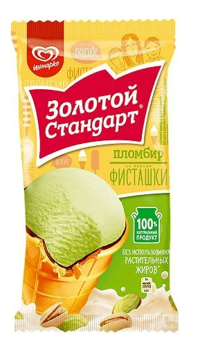 Мороженое ЗОЛОТОЙ СТАНДАРТ "Пломбир" со вкусом фисташки с глазурью 90 г 12%