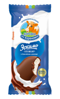 Мороженое КОРОВКА ИЗ КОРЕНОВКИ "Эскимо пломбир" ванильное в молочном шоколаде 70 г 15%