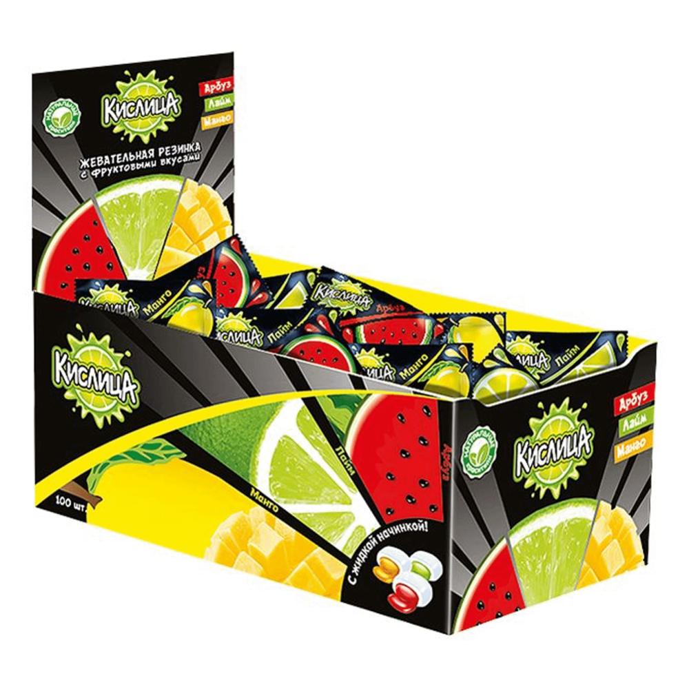 Жевательная резинка КИСЛИЦА с начинкой манго, лайм, арбуз 4 г